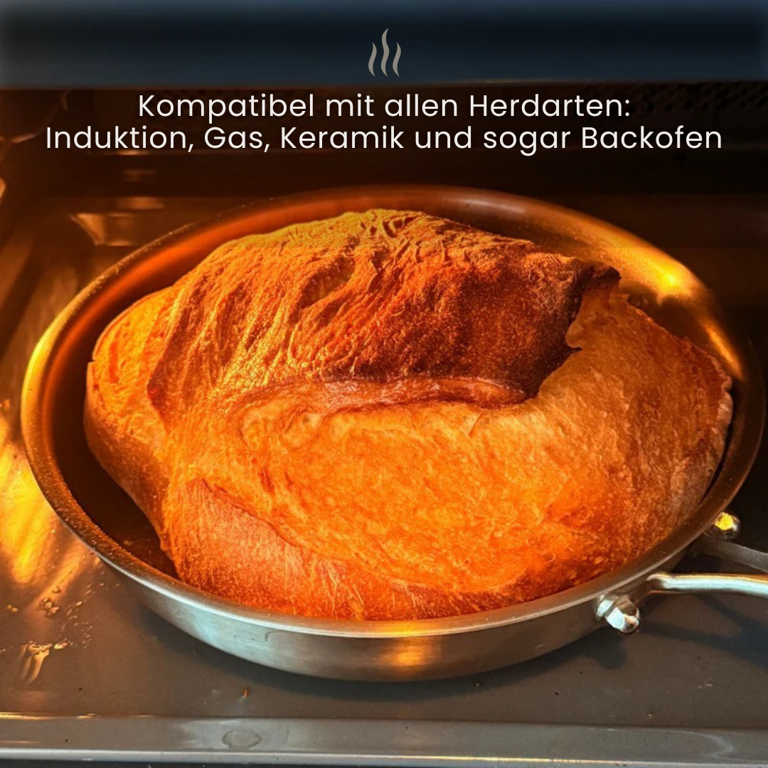 Ja, die TitaniumPro™ Pfanne ist universell kompatibel – ob Gas, Elektro, Keramik, Induktion oder Backofen.